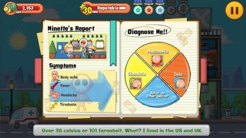 Experience a doctor’s life firsthand as you save lives—and money—in this exciting simulation game! Visit a charming little city where you’ll meet and diagnose wacky patients, administer medical treatments for combos and bonuses, and upgrade your small clinic into a multistory hospital. But Beware! There is an evil tycoon out to buy the land your hospital sits on. Earn awards for hospital excellence to save your hospital from his grubby hands!